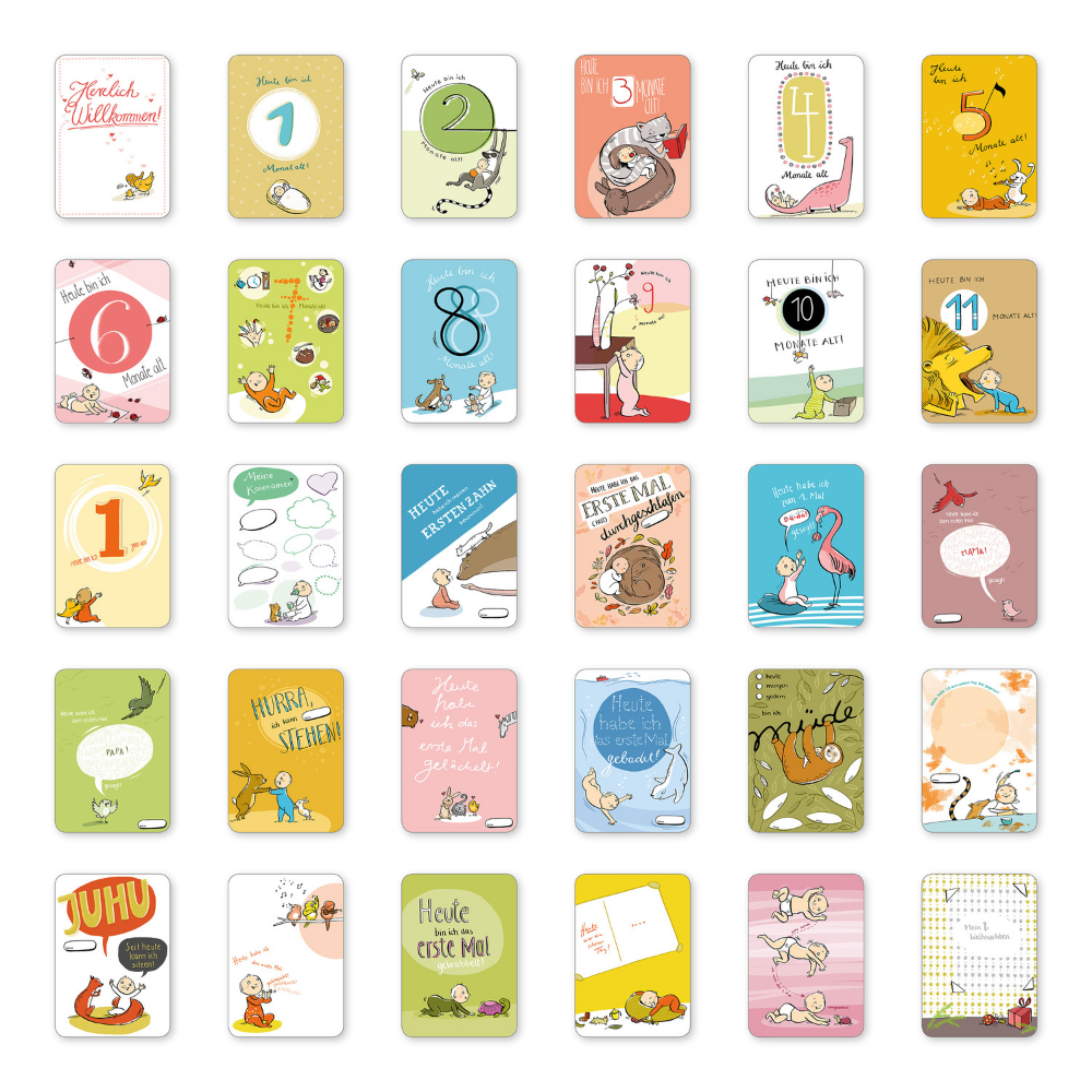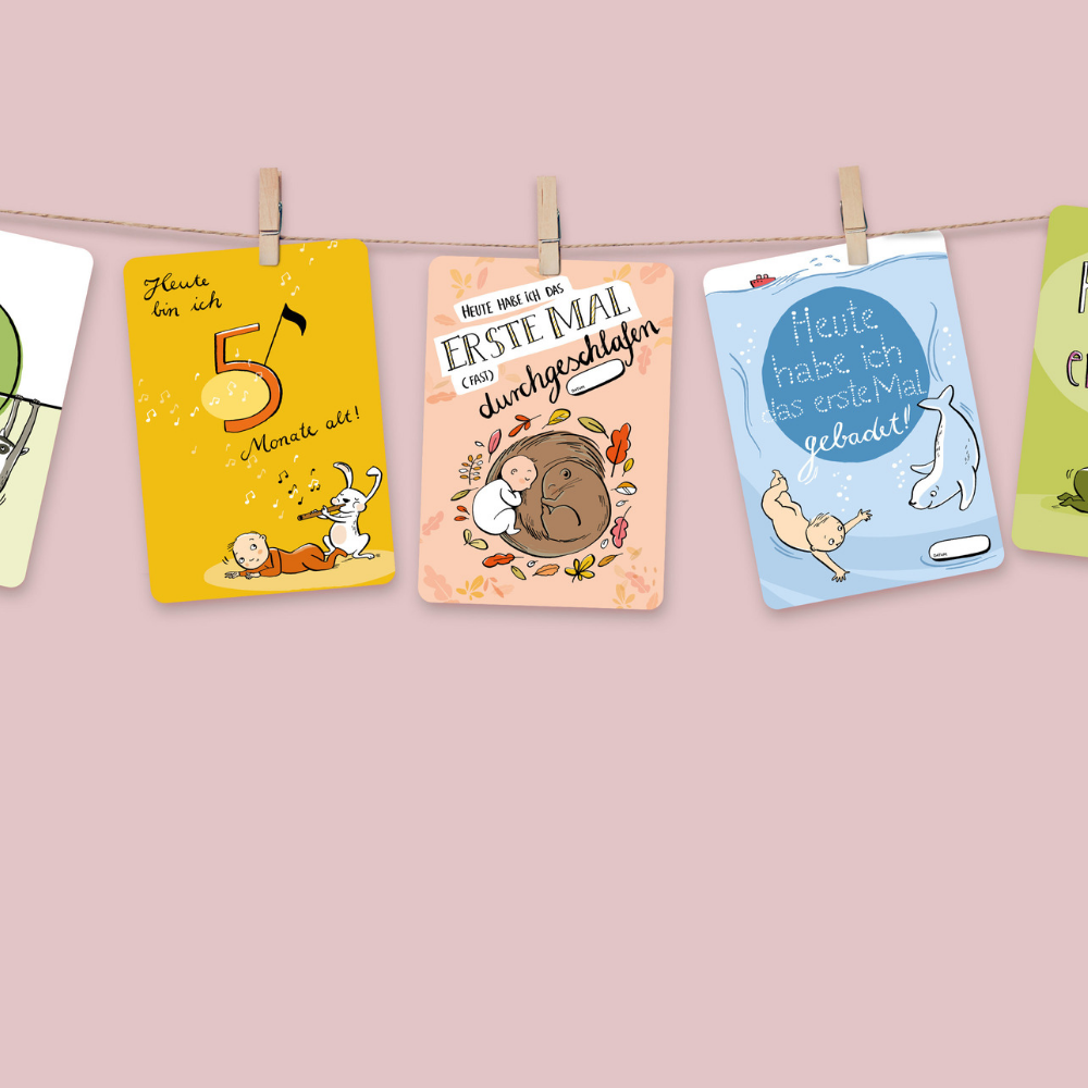 Das perfekte Match: Die Karten sind optisch ideal auf unser Baby-Tagebuch abgestimmt und bilden zusammen ein harmonisches Erinnerungs-Set.